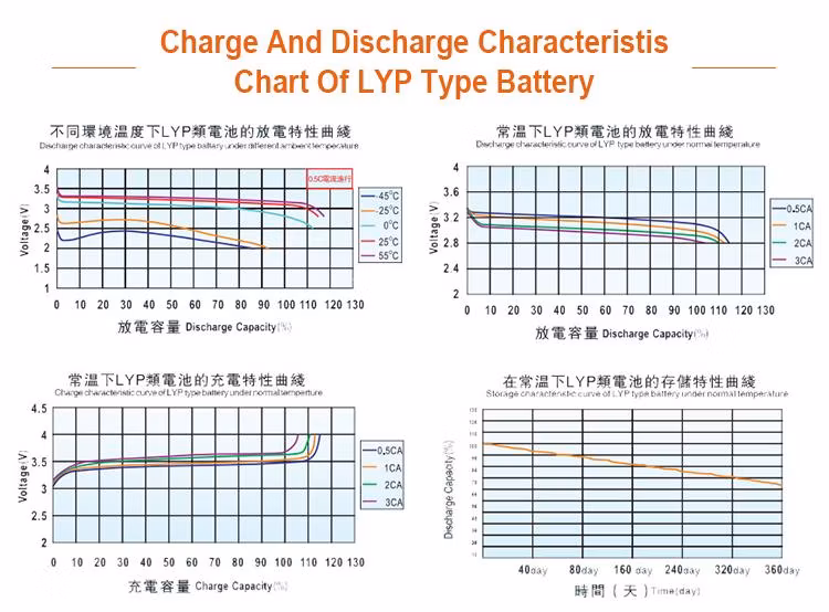 Положительный активный материал батареи LYP на водной основе изготовлен из флюоринового соединения и редкой земли, в то время как активное вещество отрицательного электрода изготовлено из наноуглеродного волокна и искусственного графита. Поэтому она может сохранить свою внутреннюю молекулярную структуру неизменной, решёткой твердой, ударопрочной, высокой безопасности, широкой термостойкости и длительного срока службы при зарядке высокого тока.
